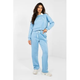 Kompletní teplákový set skládající se z mikiny a kalhot je pohodlnou volbou pro každodenní casual stylizace. Mikina s dlouhým rukávem a límečkem je kratší než standardní, což dodává celku moderní charakter, a vyšívané nápisy vpředu jsou módním, dekorativním prvkem. Kalhoty s dlouhými rovnými nohavicemi a vysokým pasem zajistí pohodlí a volnost pohybu. V pase je šňůrka pro individuální nastavení, a boční kapsy zvyšují funkčnost modelu. Set je vyroben z kombinace polyesteru, elastanu a viskózy, což z něj činí měkký, elastický a příjemný na nošení. Ideální volba na každý den, jak pro domácí odpočinek, tak i pro neformální vycházky.