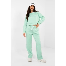 Kompletní teplákový set skládající se z mikiny a kalhot je pohodlnou volbou pro každodenní outfit v ležérním stylu. Mikina s kratšími rukávy a límečkem než je standard nabízí celku moderní charakter, a vyšívané nápisy vpředu přidávají módní dekorativní prvek. Kalhoty s dlouhými, rovnými nohavicemi a vysokým pasem zajistí pohodlí a volnost pohybu. V pasu mají šňůrku pro individuální nastavení a boční kapsy zvyšují funkčnost modelu. Set je vyroben z kombinace polyesteru, elastanu a viskózy, díky čemuž je měkký, pružný a příjemný na nošení. Je to ideální volba na každý den, ať už pro domácí odpočinek nebo pro neformální vycházky.