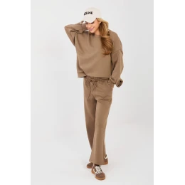 Elegantní dámský komplet skládající se z mikiny a kalhot, ideální pro každodenní outfit v casual stylu. Vyrobený z měkké a příjemné viskózy s přídavkem elastanu, který zajistí pohodlí a volnost pohybu po celý den. Mikina s dlouhou délkou má kulatý výstřih a dlouhý rukáv, ozdobený jemnou textilní růží u zápěstí, která dodává celku ženský a originální charakter. Kalhoty s vysokým pasem a přímými nohavicemi zaručují pohodlí a nadčasový vzhled. V pasu je vsazena guma a šňůrky k zavázání, umožňující ideální přizpůsobení postavě. Další výhodou jsou boční kapsy, které zvyšují funkčnost kompletu. Hladký vzor činí komplet univerzálním a snadno kombinovatelným, skvělý jak na procházku, tak do každodenního života. To je nabídka pro ženy, které oceňují pohodlí, styl a jemné detaily.