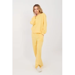 Dámský teplákový set vyrobený z mimořádně měkkého materiálu typu butter je ideální kombinací pohodlí a stylu pro každodenní nošení. Tkanina z směsi viskózy, polyesteru a elastanu je velmi jemná, elastická a příjemná na dotek, díky čemuž se tento set skvěle hodí jak doma, tak při vycházkách do města. Set se skládá z volného, casualového topu a kalhot s vysokým pasem, ve kterých stahovací guma zaručuje perfektní přiléhání k postavě. Široké nohavice dodávají celku lehkost a moderní vzhled, a boční kapsy zdůrazňují praktický charakter setu.