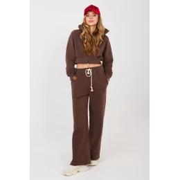 Dresový set skládající se z mikiny a kalhot je ideální volbou pro ty, kteří ocení pohodlí a módní, casual styl každý den. Hladký vzor dává celku univerzální charakter, díky čemuž se set skvěle hodí jak při každodenních aktivitách, procházkách, tak i doma. Mikina s dlouhým rukávem je vybavena praktickou kapucí a pohodlným zipem, co umožňuje rychlé oblékání a regulaci teplotního komfortu. Subtilní vyšívaný motiv umístěný na úrovni hrudníku vlevo dodává celku stylový, výrazný akcent. Kalhoty mají dlouhé, široké nohavice, které zajišťují volnost pohybu a zapadají do aktuálních trendů. Vysoký pas zdůrazňuje pas, šňrování zaručuje pohodlné přizpůsobení a boční, zasouvací kapsy zvyšují funkcionalitu modelu. Další vyšívání na kalhotách vytváří souvislý, estetický detail s mikinou. Set je vyroben z vysoce kvalitní směsi bavlny a polyesteru, díky čemuž spojuje jemnost, prodyšnost a trvanlivost. Jedná se o pohodlný a stylový set, který se skvěle hodí do každodenních stylizací.