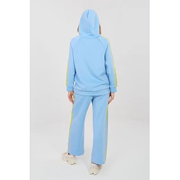 Dámský teplý set skládající se z mikiny a kalhot, ideální pro každodenní volnočasový styl. Hladký vzor dělá set moderní a univerzální, což ho skvěle hodí na procházky, nákupy nebo relaxaci. Set je vyrobený z pohodlné směsi polyesteru, elastanu a viskózy, která je měkká, pružná a dobře se přizpůsobuje postavě, poskytující pohodlí po celý den. Mikina s dlouhým rukávem má praktickou kapuci a zip, co usnadňuje oblékání a umožňuje ji přizpůsobit počasí. Další výhodou jsou boční kapsy. Rukávy jsou ozdobeny módními pruhy, které dodávají sportovní charakter. Kalhoty mají vysoký pas a dlouhé, široké nohavice, které zajišťují volnost pohybu. V pase je elastický pásek a šňůrka pro lepší přizpůsobení. Pruhy na nohavicích zdůrazňují moderní, sportovně-volnočasový styl setu.