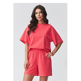 Elegantní dámský set skládající se z volného topu s krátkým rukávem a pohodlných šortek je ideální volbou pro ženy, které ocení pohodlí a stylový vzhled. Hladký oversized top s kulatým výstřihem poskytuje volnost pohybu a skvěle padne na postavu, vytvářejíc moderní, minimalistický vzhled. Dámské šortky s elastickým pasem zaručují perfektní střih a pohodlí po celý den. Volný střih a praktické kapsy zvyšují funkčnost setu, činí ho skvělou volbou jak na každý den, tak při aktivním odpočinku. Tento sportovní dámský set se hodí jako outfit na procházku, nákupy, výlet nebo relaxaci doma. V kombinaci se teniskami vytváří stylový, městský outfit. Vsadte na pohodlný dámský set, který spojuje pohodlí, všestrannost a nadčasový střih.
