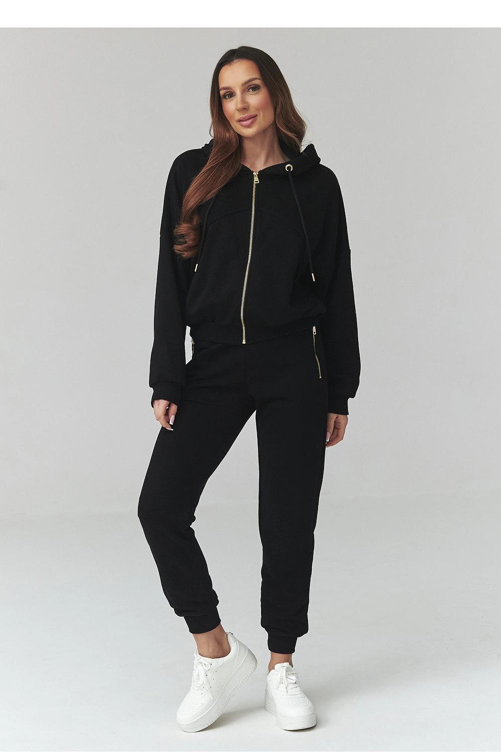 Moderní a pohodlný dámský set teplákového oblečení je ideální volbou pro ženy, které ocení casual styl a pohodlí nošení. Souprava se skládá z mikiny s kapucí s zipem a kalhot teplákového střihu s kapsami. Jedná se o skvělý dámský teplákový oblek na každý den, pro procházky, nákupy, cestování nebo relaxaci doma. Mikina má praktický zip, co usnadňuje oblékání. Jedná se o ideální dámskou teplákovou mikinu s kapucí, která se hodí jak do sportovních, tak do městských stylizací. Kalhoty mají pohodlný gumový pas, který zajistí dobré přizpůsobení postavě. Zúžené nohavice s manžetami zdůrazňují sportovní charakter setu a opticky zúžují nohy. Tento dámský teplákový set s kapucí spojuje styl, pohodlí a funkčnost. Můžete ho nosit jako set nebo vytvářet samostatné stylizace, kombinujíc mikinu a kalhoty s jiným oblečením.