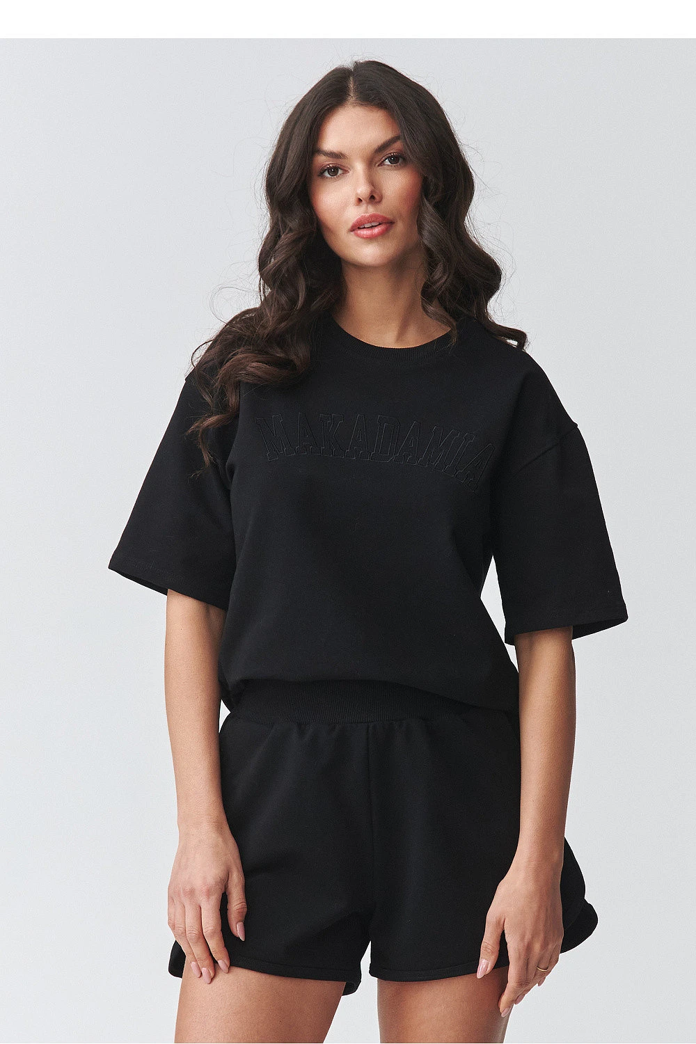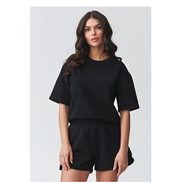 Elegantní dámský set s kraťasy je ideální volbou pro ženy, které ocení pohodlí a moderní, minimalistický styl. Set se skládá z volného trička s volným střihem a pohodlných kraťasů s elastickým pasem, vytvářející souvislý a nadčasový vzhled. Tento letní dámský set se skvěle hodí na každodenní nošení při procházce, nákupu, dovolené nebo jako pohodlný domácí oděv. Díky univerzálnímu střihu můžete nosit set jako hotovou stylizaci nebo kombinovat jednotlivé kusy, vytvářející různorodé outfit. Tričko s jednoduchým střihem zajišťuje volnost pohybu a pohodlné nošení, zatímco kraťasy s pohodlným pasem se ideálně přizpůsobí postavě. Jedná se o módní dámský casual set, který spojuje funkčnost s aktuálními trendy. Pokud hledáte pohodlné a stylové řešení na teplé dny, tento letní dámský set bude skvělou volbou. Je také skvělou alternativou k klasické teplákové soupravě, lehký, prodyšný a mimořádně pohodlný.