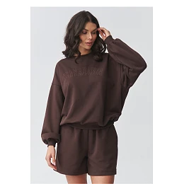Elegantní teplý komplet je ideální kombinací pohodlí a moderního designu. Součástí setu je oversized mikina s jemným vyšívaním a volné kraťasy. Skvělý návrh pro ženy, které ocení módní dámský komplet na každý den, jak pro relaxaci doma, tak pro vycházku do města. Dámská tepláková mikina je navržena v uvolněném střihu, který zaručuje maximální pohodlí a volnost pohybu. Snížená ramena a pečlivě zpracované lemy zdůrazňují její ležérní charakter. Jemné vyšívaní na přední straně dodává celku minimalistickou eleganci, zapadající do aktuálních trendů. Kraťasy s vysokým pasem zaručují pohodlí a skvělé přizpůsobení postavě. Elastický pas a měkká, příjemná na dotek pletenina zajišťují, že komplet je perfektní jako pohodlný dámský teplý oblek na teplé dny. Tento oversized teplý komplet je must-have v šatníku každé ženy, která hledá univerzální a nadčasová řešení. Skvěle se hodí ke teniskám, vytvářejí trendy sportovní stylizaci, ale stejně dobře vypadá v casualovém provedení. Sáhněte po pohodlném dámském kompletu a užívejte si styl bez kompromisů.