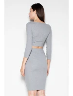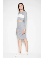 Bavlněná souprava. Top s dlouhými rukávy, ozdobným páskem v kontrastní barvě a klasicky střiženou tužkovou sukní.