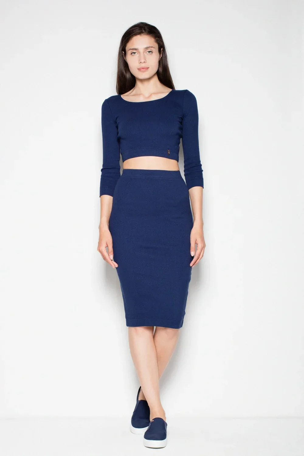 Bavlněná souprava. Top s dlouhými rukávy a klasický střih tužkové sukně.