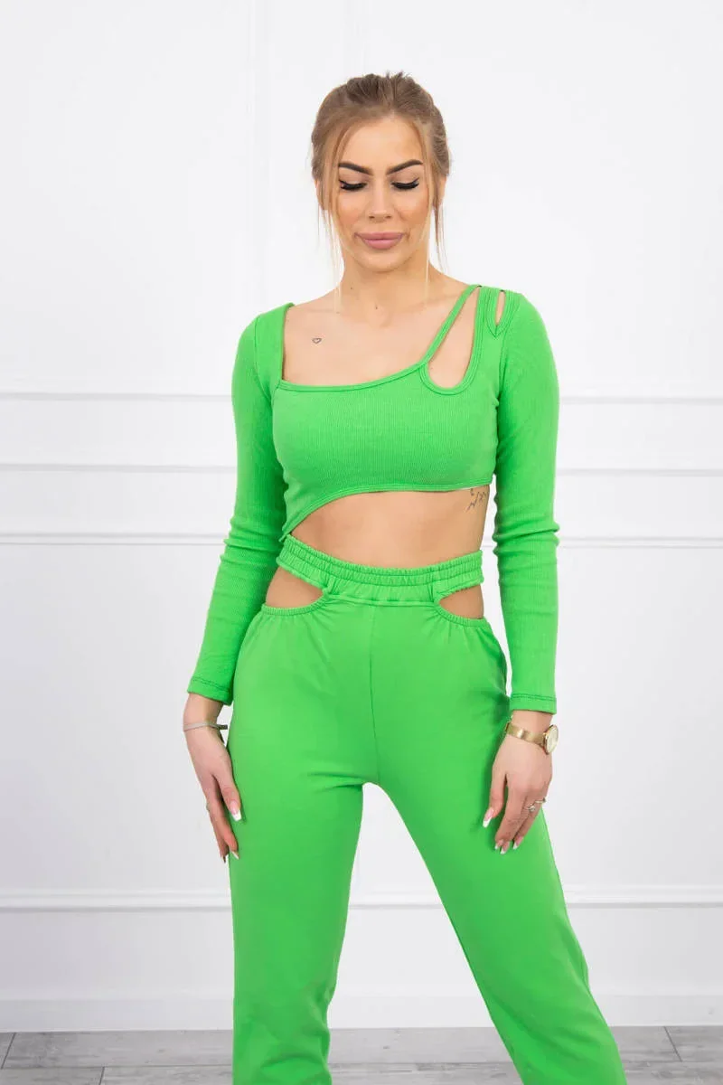 Představujeme vám sadu halenky a kalhot. Halenka z žebrované tkaniny s dlouhými rukávy. Obyčejné kalhoty bez kapes. Sada je vyrobena z vysoce kvalitního materiálu. Velikost je univerzální a vyhovuje dámám velikosti S, M nebo L.