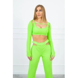 Představujeme vám sadu halenky a kalhot. Halenka z žebrované tkaniny s dlouhými rukávy. Obyčejné kalhoty bez kapes. Sada je vyrobena z vysoce kvalitního materiálu. Velikost je univerzální a vyhovuje dámám velikosti S, M nebo L.