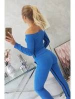 Představujeme vám sadu mikiny a kalhot. Souprava má kalhoty s vysokým pasem. Halenka z žebrované tkaniny. Dvojité lemování na kalhotách a halence. Kalhoty mají kapsy. Sada je vyrobena z vysoce kvalitního materiálu. Velikost je univerzální a vyhovuje dámám, které nosí velikost S, M nebo L.