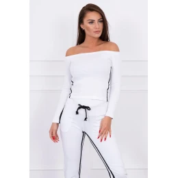 Představujeme vám sadu mikiny a kalhot. Souprava má kalhoty s vysokým pasem. Halenka z žebrované tkaniny. Dvojité lemování na kalhotách a halence. Kalhoty mají kapsy. Sada je vyrobena z vysoce kvalitního materiálu. Velikost je univerzální a vyhovuje dámám, které nosí velikost S, M nebo L.