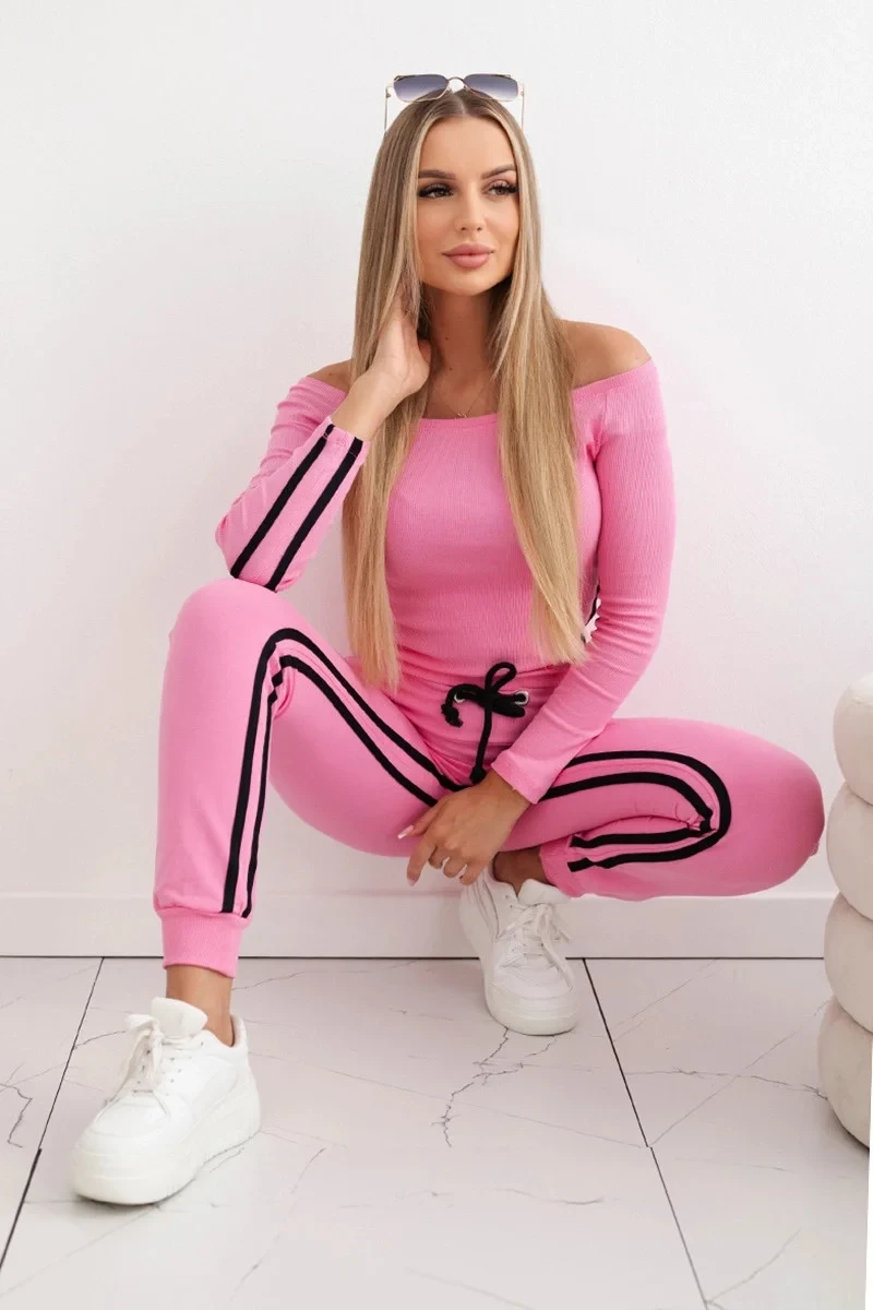 Představujeme vám sadu mikiny a kalhot. Souprava má kalhoty s vysokým pasem. Halenka z žebrované tkaniny. Dvojité lemování na kalhotách a halence. Kalhoty mají kapsy. Sada je vyrobena z vysoce kvalitního materiálu. Velikost je univerzální a vyhovuje dámám, které nosí velikost S, M nebo L.