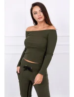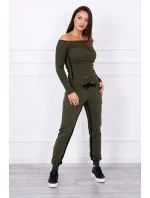 Představujeme vám sadu mikiny a kalhot. Souprava má kalhoty s vysokým pasem. Halenka z žebrované tkaniny. Dvojité lemování na kalhotách a halence. Kalhoty mají kapsy. Sada je vyrobena z vysoce kvalitního materiálu. Velikost je univerzální a vyhovuje dámám, které nosí velikost S, M nebo L.