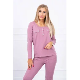 Sada s knoflíkovým výstřihem tmavě růžová