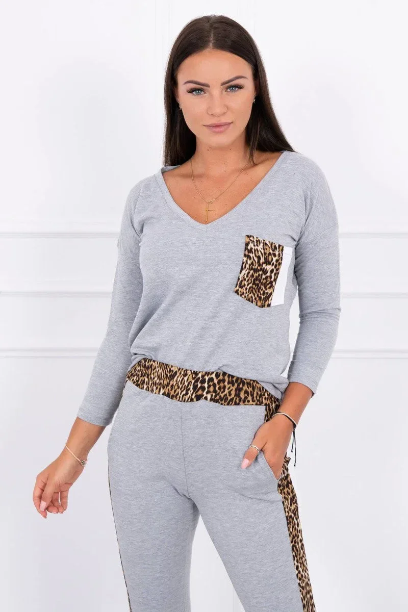 Sada s leopardím potiskem šedá