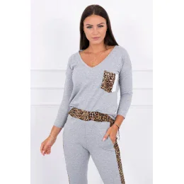 Představujeme vám sadu halenky a kalhot. Sada má vložku s leopardím potiskem. Halenka s kapsičkou na přední straně. Kalhoty mají kapsy. Sada je vyrobena z vysoce kvalitního materiálu. Velikost je univerzální a vyhovuje dámám, které nosí velikost S, M nebo L.