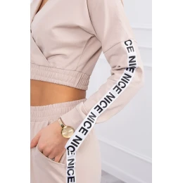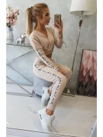 Představujeme vám sadu mikiny a kalhot. Mikina a kalhoty mají ozdobnou stuhu s nápisem. Ve spodní části mikiny je všitá guma. Kalhoty s kapsami. Velmi módní a stylová sada. Sada je vyrobena z vysoce kvalitního materiálu. Velikost je univerzální a vyhovuje dámám velikosti S, M nebo L.