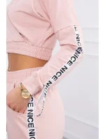 Představujeme vám sadu mikiny a kalhot. Mikina a kalhoty mají ozdobnou stuhu s nápisem. Ve spodní části mikiny je všitá guma. Kalhoty s kapsami. Velmi módní a stylová sada. Sada je vyrobena z vysoce kvalitního materiálu. Velikost je univerzální a vyhovuje dámám velikosti S, M nebo L.