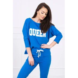 Představujeme vám sadu halenky a kalhot. Oversize halenka s potiskem Queen. Kalhoty s kapsami a zavazováním v pase. Sada je vyrobena z vysoce kvalitního materiálu. Velikost je univerzální a vyhovuje dámám velikosti S, M nebo L.
