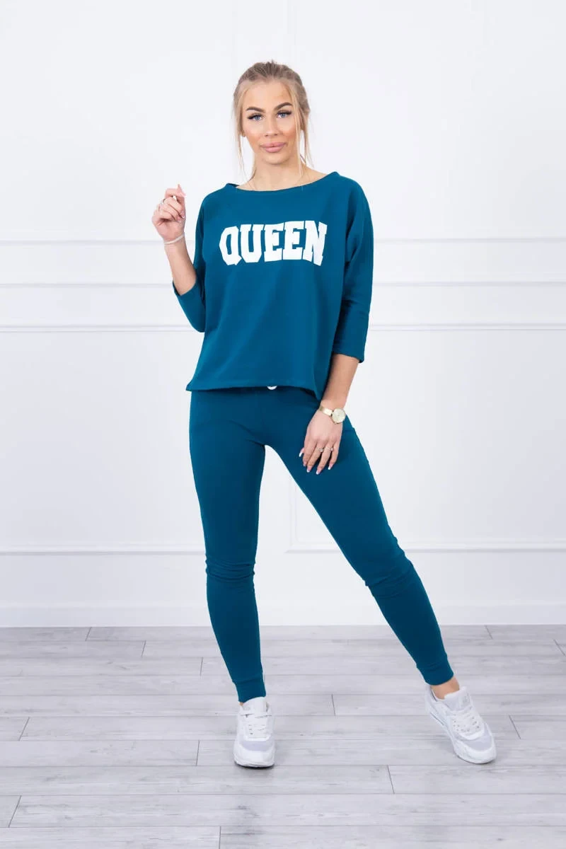 Představujeme vám sadu halenky a kalhot. Oversize halenka s potiskem Queen. Kalhoty s kapsami a zavazováním v pase. Sada je vyrobena z vysoce kvalitního materiálu. Velikost je univerzální a vyhovuje dámám velikosti S, M nebo L.