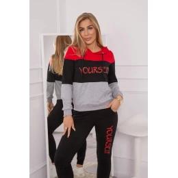 Představujeme vám sadu mikiny a kalhot. Na mikině je napsáno Yourself. Kalhoty s kapsami. Kalhoty také s potiskem. Sada je vyrobena z vysoce kvalitního materiálu. Velikost je univerzální a vyhovuje dámám, které nosí velikost S, M nebo XL