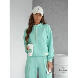 ?Představujeme vám naši mátově zelenou dámskou teplákovou soupravu - kombinaci nadčasového designu a každodenního pohodlí .Klasický svetr má uvolněný stojáček, který nabízí styl i snadný pohyb. Kalhoty s vysokým pasem jsou doplněny praktickými bočními kapsami a širokým elastickým pasem, který zajišťuje pohodlné nošení .Jemný šev podél nohavic dodává eleganci a opticky prodlužuje siluetu.???