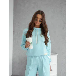 Vneste do svého šatníku závan čerstvého vzduchu v podobě naší dámské teplákové soupravy v nebesky modré barvě. Tato souprava kombinuje nadčasový styl s každodenním pohodlím, takže se skvěle hodí pro každou příležitost.?