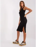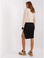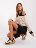 Béžovo-černý pletený set - svetr a šaty od RUE PARIS.