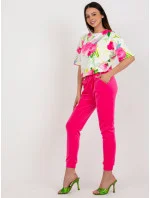 Rozměry soupravy ve velikosti S měřené na plocho: šířka halenky v podpaží - 64 cm, délka halenky - 60 cm, šířka kalhot v pase - 33 cm, výška v pase - 28 cm, délka kalhot - 98 cm.