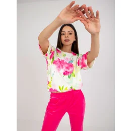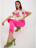 Dvoudílná velurová souprava v růžové a ecru barvě od značky RUE PARIS .