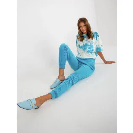 Modrá a ecu velurová souprava s potiskem RUE PARIS .