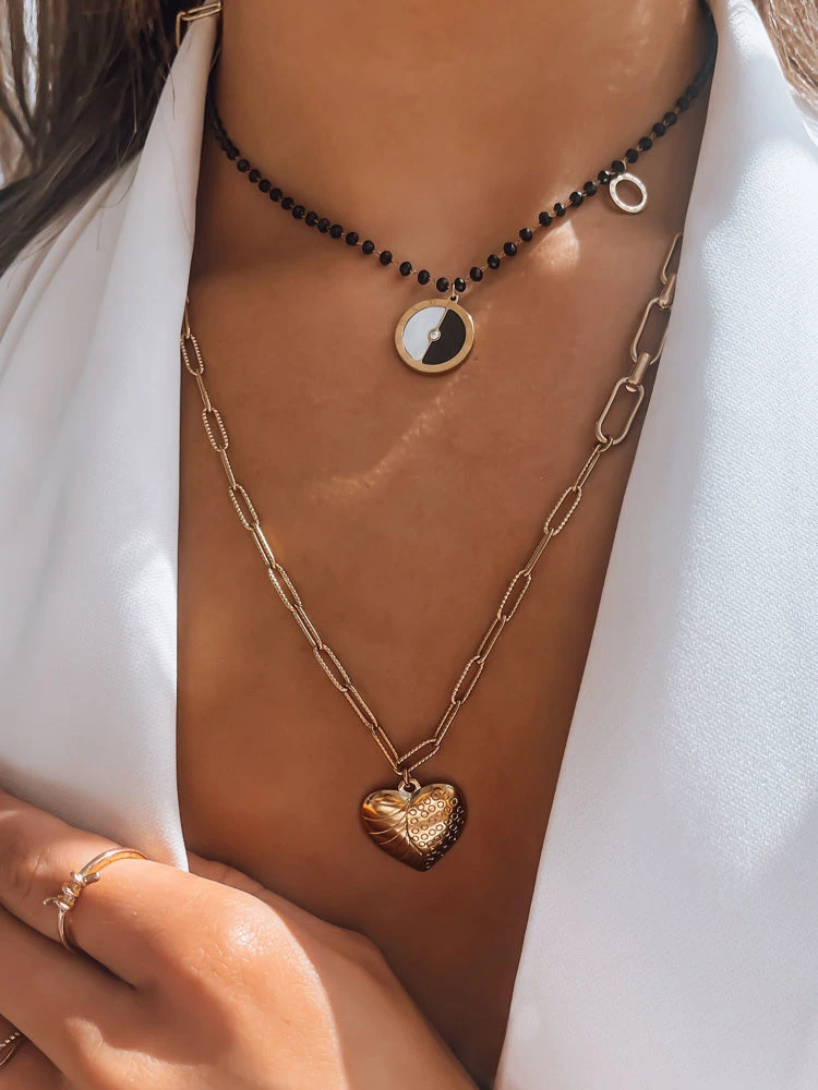 Náhrdelník SAHARUN je velmi jemný návrh, který je tvořen kombinací černých korálků. Celek je ozdoben dekorativními přívěsky. Skvěle se hodí ke každé stylizaci a je ideální i jako dárek.