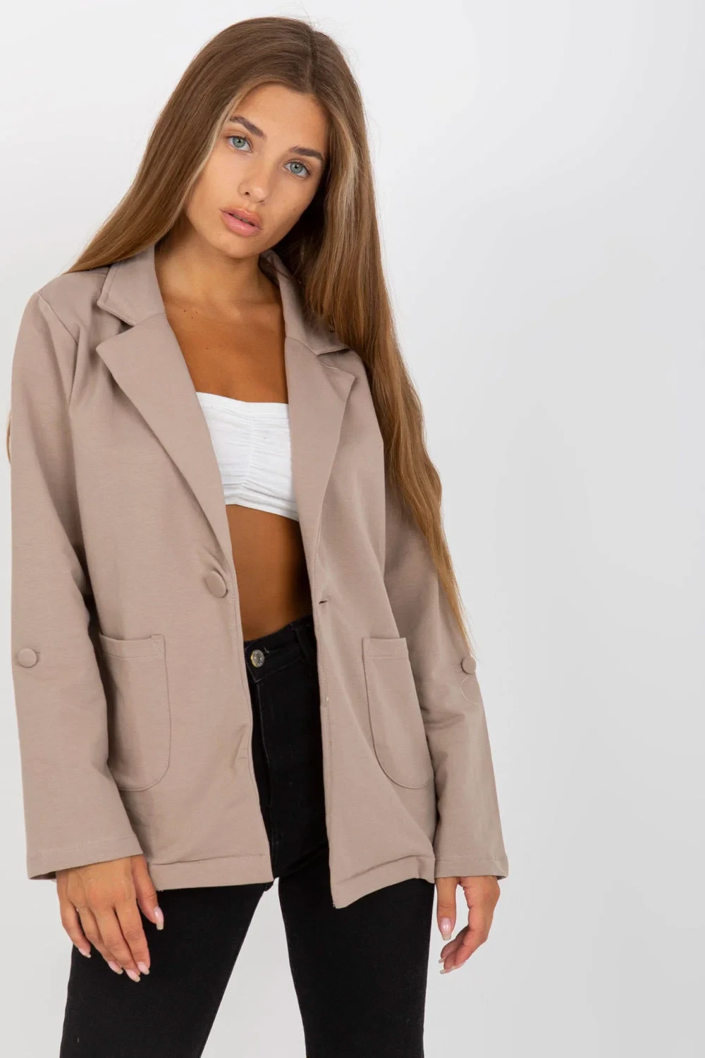 Tepláková bunda s dlouhými rukávy a zapínáním na knoflíky. Bunda s nakládanými kapsami. Rukávy s možností zapínání.
