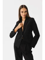Tato bunda je kombinací elegance a modernosti. Je vyrobena z vysoce kvalitní tkaniny a vypadá výjimečně. Má krátký a asymetrický střih, který mu dodává originalitu. Klasický límec dodává eleganci a styl. Zapínání na jeden knoflík je praktické a dodává saku na eleganci. Dlouhé rukávy jsou univerzální a umožňují různé stylizace. Na přední straně jsou imitace kapes s klopami, které dodávají charakter. Sako je plně podšité pro pohodlné nošení a povrchovou úpravu. Je ideální volbou pro různé příležitosti, od formálních schůzek až po neformálnější situace, a dodá vám sebevědomí a eleganci. Navrženo a ušito v Polsku.