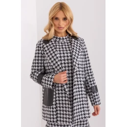 Dámská bunda s dlouhými rukávy a vycpaným límcem. Bunda se zapíná na knoflíky a má podšívku. Bunda má nakládané kapsy. Bunda je vyrobena z peplum tkaniny s lemováním z ekokůže.