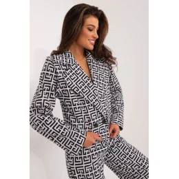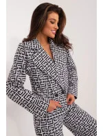 Dámské sako je ideální pro ženy, které si cení elegance a stylu, a vypadá výjimečně ve všech situacích, ať už v práci nebo při důležitých obchodních či formálních schůzkách. Díky své univerzálnosti je ideální pro podzimní/zimní a jarní období. Tento elegantní oděv má dlouhé rukávy, takže je vhodnou volbou pro chladnější dny. Dominantním vzorem je geometrický motiv, který saku dodává moderní a dynamický charakter. Je vyrobeno převážně z bavlny, což zaručuje pohodlné nošení a příjemný pocit na kůži. Zapínání na knoflíky usnadňuje oblékání a svlékání bundy, zatímco dvouřadový střih dodává celkovému vzhledu eleganci a šik. Klasické klopy zdůrazňují formální charakter saka a přispívají k jeho sofistikovanému vzhledu. Přítomnost podšívky je praktickým detailem, který nejenže zvyšuje pohodlí při nošení, ale také umocňuje estetiku saka. Díky těmto vlastnostem se toto dámské sako stává nezbytnou součástí šatníku žen, které chtějí zdůraznit své sebevědomí a styl v nejrůznějších situacích.