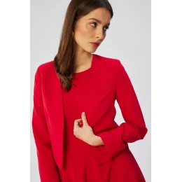 Krátká bunda je jedinečný kousek oděvu, který se vyznačuje krátkým střihem, jenž mu dodává moderní a dynamický vzhled. Díky absenci límce a tradičního zapínání vypadá toto sako stylově a neformálně. Její dlouhé rukávy jí dodávají eleganci při zachování lehkého charakteru. Vpředu na hrudi je imitace kapsy, která bundě dodává nádech ležérní elegance. Celá bunda je pečlivě dokončena a podšita, což zajišťuje nejen estetický vzhled, ale také pohodlné nošení. Je ideální volbou pro ty, kteří hledají elegantní a zároveň ležérní kousek šatníku, ideální pro různé příležitosti. Navrženo a ušito v Polsku.