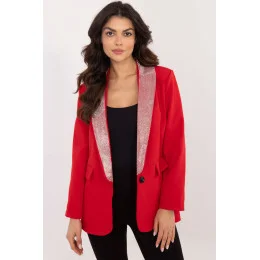 Elegantní dámský sako s ozdobnými límci a vestavěnými polštářky, skvělý na slavnostní příležitosti a večerní vycházky. Vyrobena z látky obsahující polyester a viskózu, poskytuje pohodlí nošení a skvělé přizpůsobení. Standardní délka a klasický střih s jedním knoflíkem jí dodávají nadčasový šarm, zatímco dlouhý rukáv a pečlivě vyrobená podšívka zvyšují pohodlí. Límce zdobené decentními flitry dodávají celku výjimečný charakter a trochu lesku, ideálně zapadající do elegantního stylu saka.