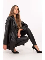 Elegantní dámský blejzr z ekokože je jedinečným prvkem šatníku, který kombinuje klasiku s moderním charakterem. Vyrobený z odolné směsi polyesteru a polyuretanu vypadá nesmírně elegantně a zároveň je praktický a snadno se udržuje. Díky podšívce poskytuje pohodlí v chladnějších dnech a činí z ní ideální volbu na podzim, zimu a jaro. Blejzr standardní délky se vyznačuje širokými límci, které mu dodávají nadčasový šarm, a vestavěnými polštářky na ramenou, které zdůrazňují siluetu a dodávají jí strukturu. Dvojitý řadový závěr na knoflíky posiluje elegantní charakter tohoto modelu, a ozdobné záhyby v pase opticky zeštíhlují postavu, dodávajíce blejzru ženský výraz. Je to skvělá volba na různé příležitosti, od každodenních stylizací po společenská setkání nebo pracovní dny. Blejzr skvěle ladí jak s elegantními kalhotami, tak s džínami, umožňující vytváření různorodých, stylových outfitů.