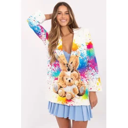 Elegantní dámský sako v casual stylu, skvělý na každodenní nošení, do práce, na večírek a na slavnostní příležitosti. Vyrobený z lehké směsi viskózy a polyesteru, ideální na jaro a léto. Barevný potisk dodává moderní a odvážný charakter, čímž se odlišuje od klasických modelů. Sako má standardní délku, dlouhý rukáv a jednoduché zapínání na knoflík, které zdůrazňuje jeho elegantní vzhled. Vložené polštářky na ramenou dodávají výraznosti a jemně tvarují postavu. Klasické límce a podšívka dodávají celkově stylové dokončení. Bez podšívky, takže se skvěle hodí do teplejších dní. Ideální volba pro ženy, které chtějí spojit eleganci s moderním designem a pohodlím.