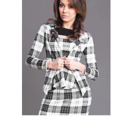 Dámské rozepínací sako střihu na míru v bílo-černé kostkované barvě. Bunda je ideální pro vytvoření mnoha zajímavých outfitů.