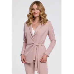 Elegantní zajímavě řešení sako se zavazováním. Vpředu nabírané, vypasovaný střih, úzké rukávy, s podšívkou.