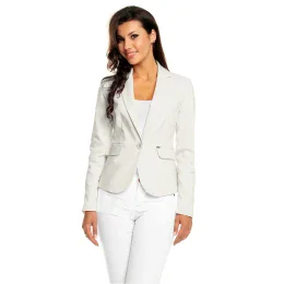 Jednoduché a elegantní sako s jedním knoflíkem uprostřed. Výstřih má hluboký špičatý límec. Ozdobné nášivky imitující kapsy na bocích v přední části. Ideální pro přechodná roční období. Bavlněné sako s podšívkou se hodí na podzimní a jarní obchodní schůzky i rodinné akce.