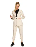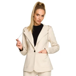 Pokud jste si mysleli, že už znáte bundu ve všech verzích, máme pro vás něco zcela netradičního. Kabátek, ale ušitý z úpletu, podšitý a zapínaný na jeden knoflík. Místo klasického límce jsme však navrhli límec, který se s kalhotami změní v kapuci, a na přední straně jsme našili dvě praktické kapsy. Bunda je celá podšitá.