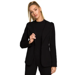 Pokud jste si mysleli, že už znáte bundu ve všech verzích, máme pro vás něco zcela netradičního. Kabátek, ale ušitý z úpletu, podšitý a zapínaný na jeden knoflík. Místo klasického límce jsme však navrhli límec, který se s kalhotami změní v kapuci, a na přední straně jsme našili dvě praktické kapsy. Bunda je celá podšitá.