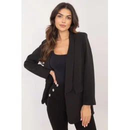 Dámský sako s elegantním střihem, ideální na každý den, do práce i na formální události. Vyniká vsazenými polštářky na ramenou, které jí dodávají sofistikovanou strukturu a jemně zdůrazňují siluetu. Hladká látka vyrobená z kombinace polyesteru a viskózy poskytuje pohodlí nošení a odolnost, čímž je vhodná pro podzimní a zimní sezónu i na jaro. Sako má standardní délku a dlouhý rukáv, a absenci zapínání jí dodává lehkost a univerzální charakter. Vybavené podšívkou, která poskytuje dodatečný komfort při nošení.