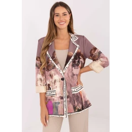 Dámský kabát s každodenním charakterem, ideální pro práci a casual stylizace. Vyrobený z viskózy a polyesteru s potiskem a decentními nápisy na celém materiálu, vyniká moderním, originálním designem. Model standardní délky s dlouhými rukávy, vestavěnými polštářky na ramenou a podšívkou zajistí elegantní střih a pohodlí nošení. Zapínání na knoflík zdůrazňuje klasický střih, hladká podšívka dodává lehkost a pohodlí.