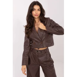 Kožený žaket s krátkou délkou, ideální pro každodenní stylizace. Vyrobený z polyesterové směsi s polyuretanem, hladký materiál napodobující kůži dodává moderní, výrazný charakter. Model má vestavěné polštářky na ramenech, které jemně zdůrazňují siluetu a přidávají lehký strukturální efekt. Dlouhý rukáv a klasické dvouradé zapínání na knoflíky zdůrazňují elegantní, ležérní styl žaketu. Navíc je žaket vybaven podšívkou, která zajišťuje pohodlné nošení a materiál se krásně tvaruje podle postavy. Ideální volba pro ženy, které chtějí spojit pohodlí každodenního stylu s moderním, lehce rockovým charakterem eko kůže.