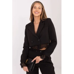 Elegantní dámský žaket je jedinečný model vytvořený s ohledem na návštěvní příležitosti, kombinující klasický tvar s efektními, ženskými zdobeními. Jeho krátká délka a propracované detaily dodávají outfitu elegantní a moderní charakter. Vyrobený z kombinace polyesteru a viskózy, žaket vypadá elegantně, je příjemný na dotek a skvěle padne na postavě. Vnitřek je vybaven podšívkou, co zvyšuje pohodlí nošení a kvalitu zpracování. Dalším konstrukčním prvkem jsou vestavěné ramenní polštářky, které jemně tvarují linii ramen a dodávají žaketu formálnější, návštěvní charakter. Přední část žaketu zdobí dvouradé zapínání na knoflíky, dodávající celku klasický, elegantní výraz. Dolní část žaketu je zdobena decentní krajkou, která se také objevuje na dlouhých rukávech, vytvářejíc harmonické a ženský doplněk celku. Jedná se o ideální žaket pro ženy, které milují eleganci s nádechem efektního lesku, skvělý na večírky, slavnostní události a všechny návštěvní příležitosti.
